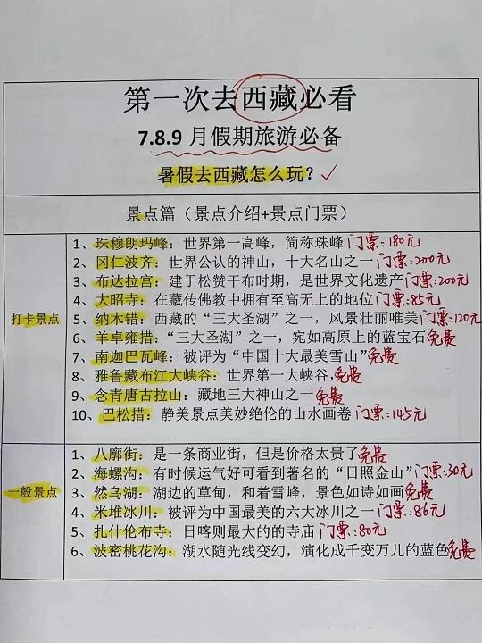 「重点重点」以下是我总结的西藏旅游诸多事项,包含推荐景点,注意事项,必备物品,美食,天气,穿衣等等。